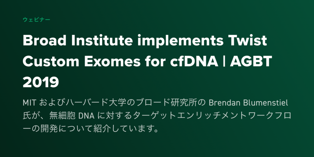 ウェビナー:Broad Institute implements Twist Custom Exomes for cfDNA